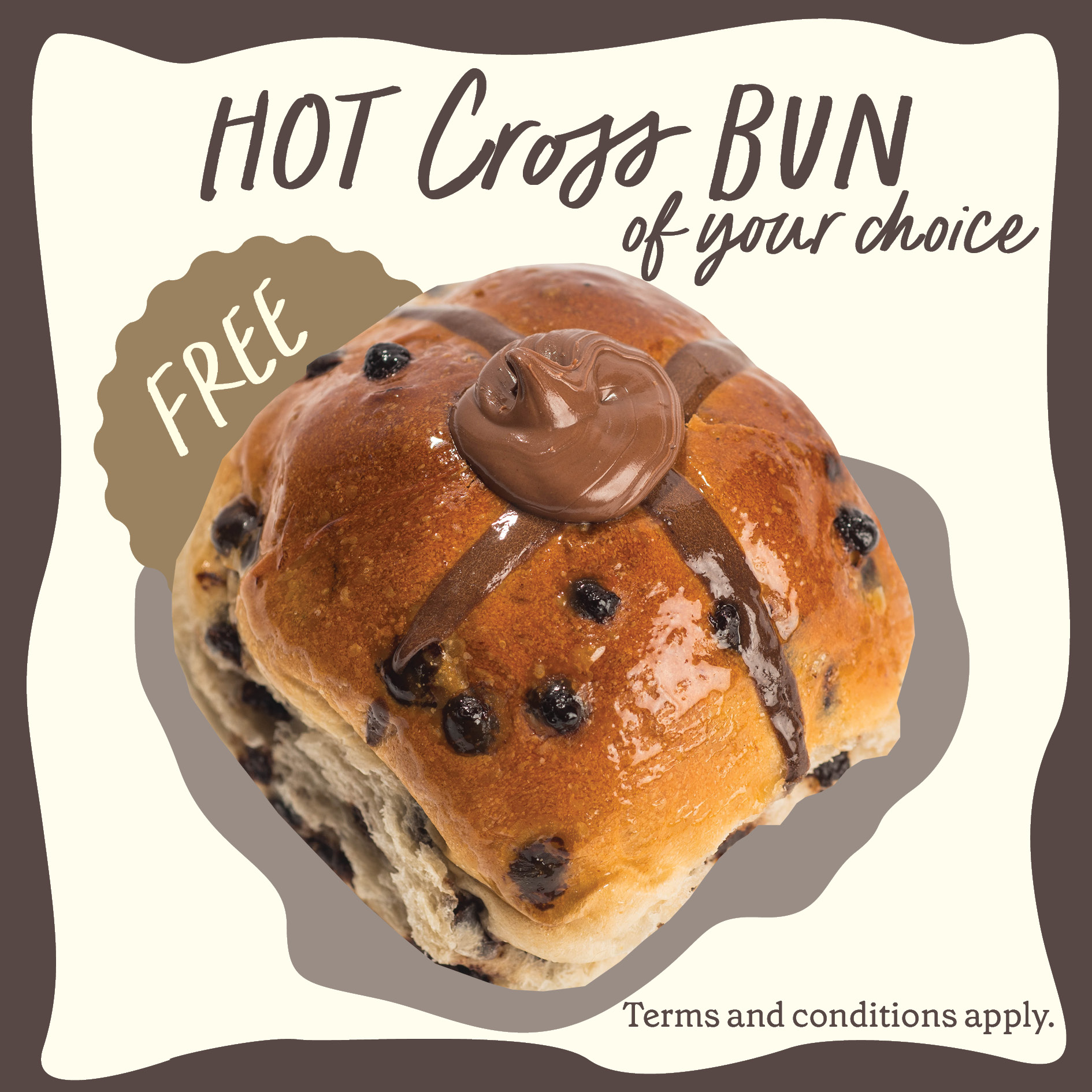 *Enjoy any Hot Cross Bun for $2.50 when any Barista made drink is purchased in the same transaction. Excludes drinks from the drinks fridge.