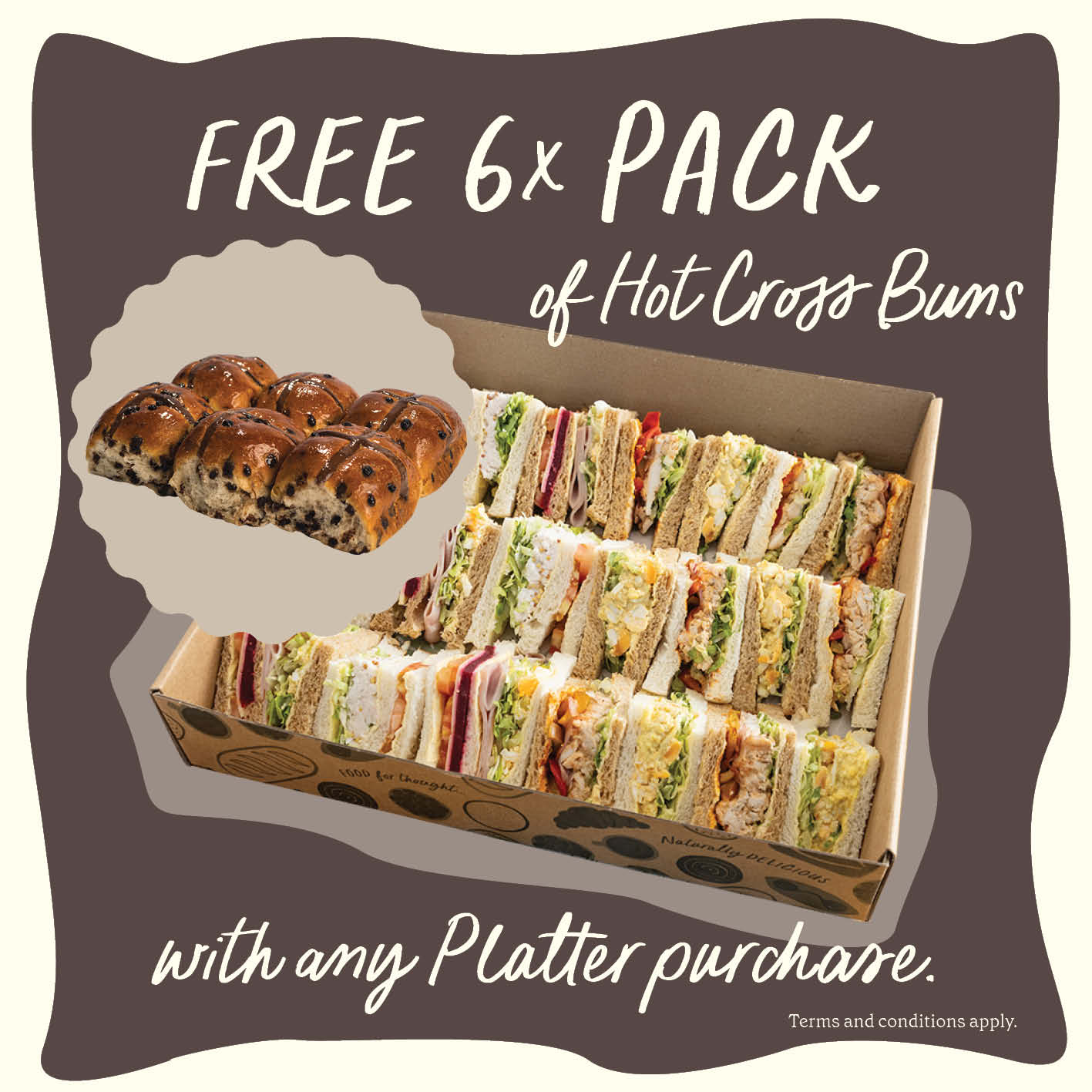 Buy a Platter Get a Free 6 pack Hot Cross BunBanjo’s ViPs can enjoy a FREE 6-pack of Hot Cross Buns with any platter purchase when they redeem their in-app coupon. Available exclusively in the Banjo’s App for registered, signed-in users. Simply add your platter and Hot Cross Bun 6-pack to cart and apply the coupon at checkout before 6 April 2026. |